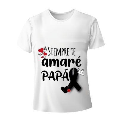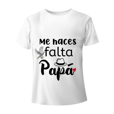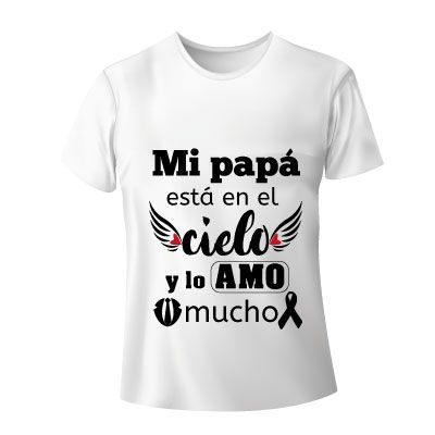 Te hemos traido originales y bonitas camisetas blancas, perfectas para dedicar en esas fechas difíciles donde has perdido a tu papá; estas camisetas vienen con frases cortas y símbolos de duelo que representan el cariño, admiración y amor que le tenías a tu padre.