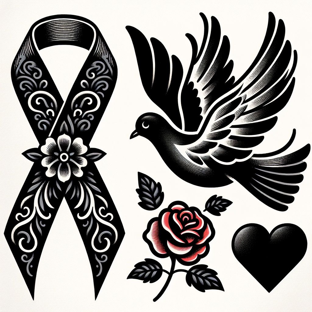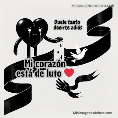 Son lazos de luto, cintas de luto, listón de luto con símbolos de duelo y tristeza por la partida de un ser querido que se fue al cielo dejando el corazón lleno de nostalgia y soledad.