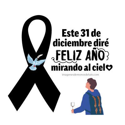 Son imágenes de luto cuando esta llegando el año nuevo y la ausencia de nuestros seres queridos se siente mas, imágenes de luto con frases de nostalgia porque este año nuevo no podremos darle se abrazo de feliz año a alguien que ahora está en el cielo y su ausencia nos duele demasiado.