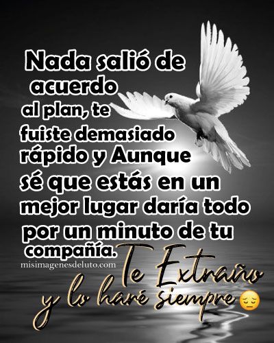 Nada salió de acuerdo al plan, te fuiste demasiado rápido y aunque se que estás en un lugar mejor daría todo por un minuto de tu compañía, te extraño y lo hare siempre. te extrañaré toda la vida y mas allá